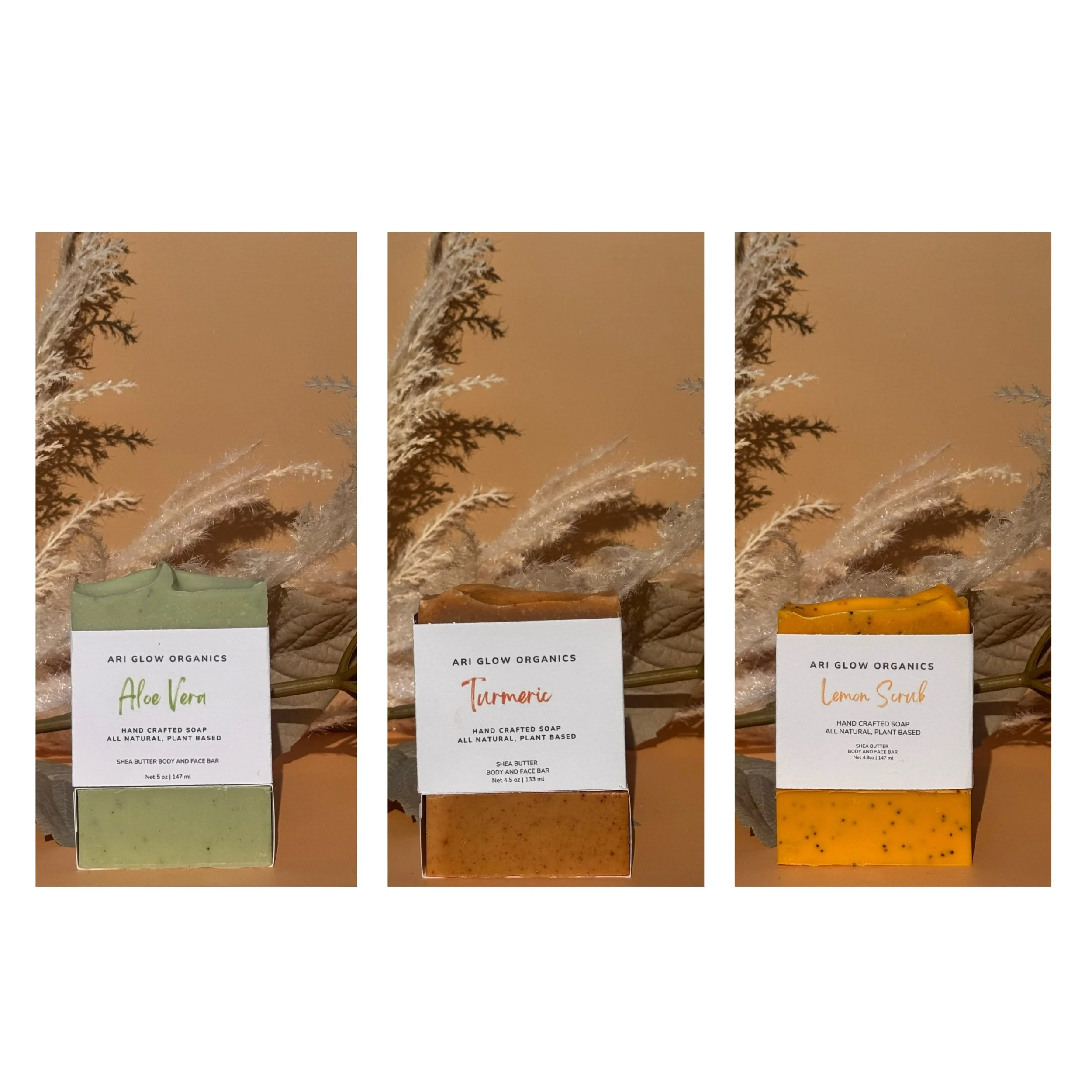 Our soaps are made with nourishing oils and butters and colored with natural clays and plant based colorants. They nourish and hydrate while leaving your skin hydrated and smooth.
